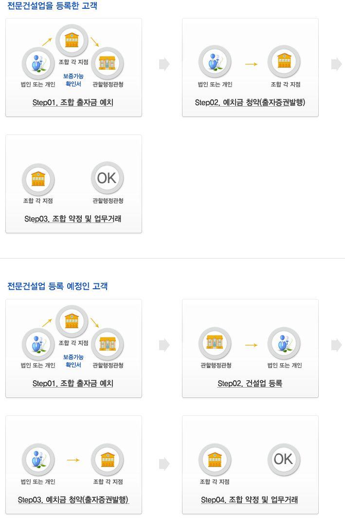 ¡¤ °Ç¼³¾÷ µî·ÏÀ» ÇÏ·Á¸é Ç×ÈÄ º¸Áõ°Å·¡¸¦ ÇÒ º¸Áõ±â°ü(°Ç¼³°øÁ¦Á¶ÇÕ)¿¡ ÃâÀÚ ÈÄ º¸Áõ°¡´É±Ý¾×È®Àμ¸¦ ¹ß±Þ¹Þ¾Æ °üÇÒ Çùȸ¿¡ Á¦Ãâ